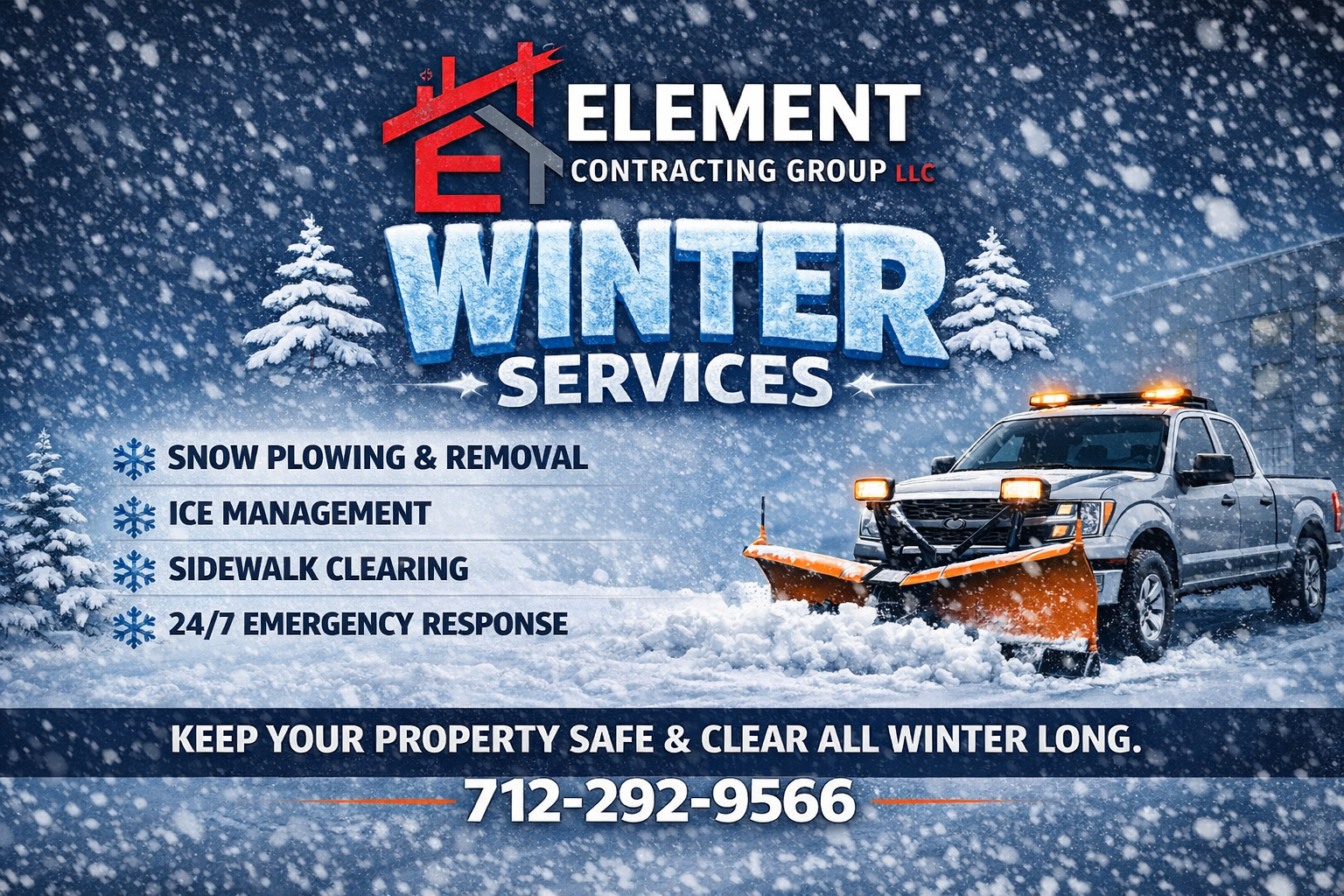 At Element Contracting Group, we treat winter weather like a safety issue—not just a convenience. Our approach is built around preparation, fast response, and consistent results, so your property stays accessible, compliant, and protected during every storm event.
